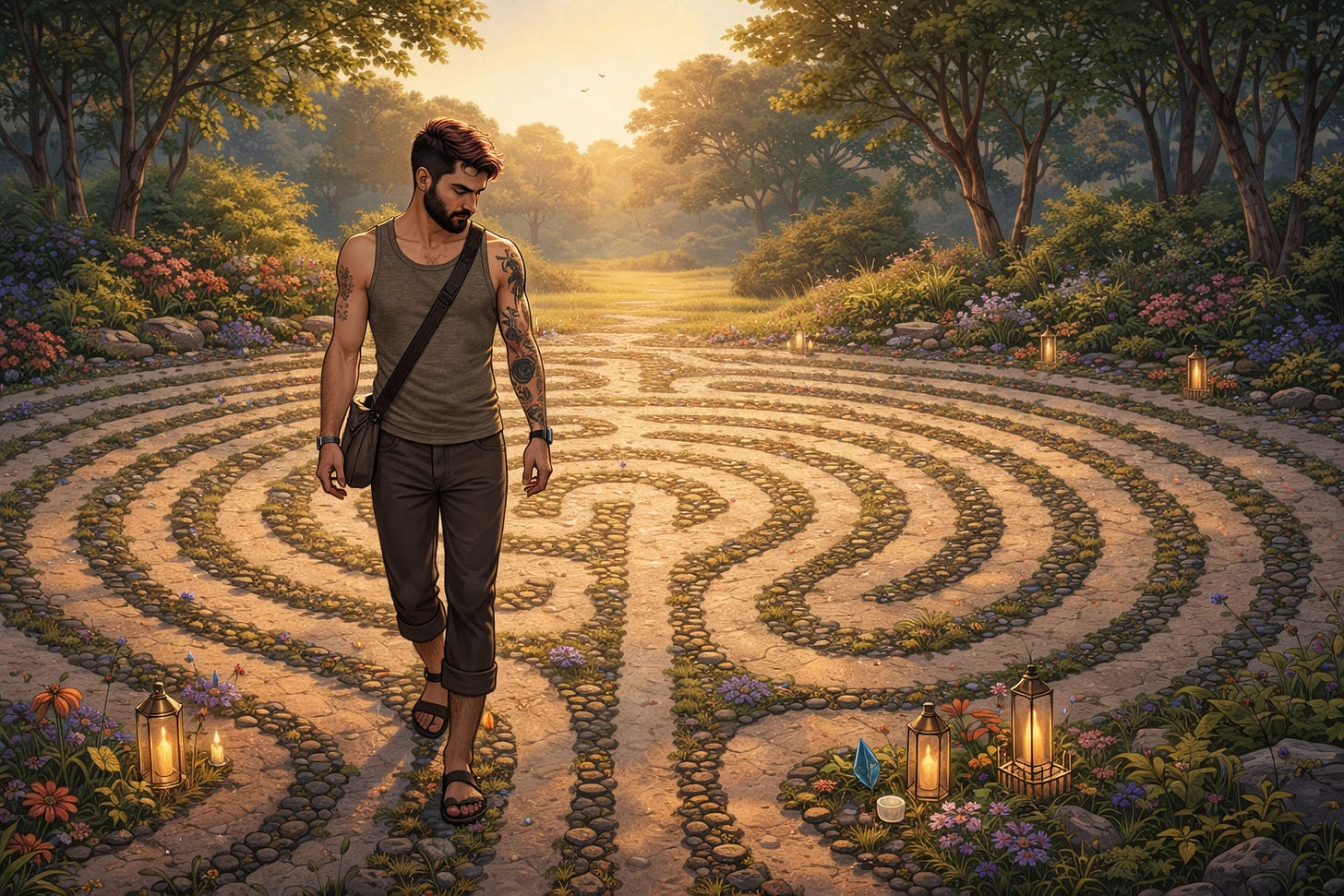 Walking the Labyrinth is where we’ll share insights, essays, and personal reflections on the contemplative life from our distinctly queer perspective. We’ll talk about prayer and politics, silence and sex, mysticism and making dinner. We’ll explore what it means to practice Lectio Divina when Scripture has been weaponized against us, or how to cultivate stillness when the world demands you justify your existence.